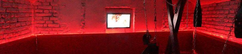 Und zu guter letzt findest du, in einer Art Quadratischen, mit schwarzen Fließen und sehr gedämpften Licht ausgestattetem Raum einen Nassbereich. Hier gibt es dunkle Ecken um sich zu vergnügen oder in der Mitte, ein paar Stufen weiter runter, ein Sling sowie Dusche & eine Badewanne für NS Spielchen. Der Boden ist teilweise ein riesiges Gitter, mit einem drunterliegenden Abfluss.