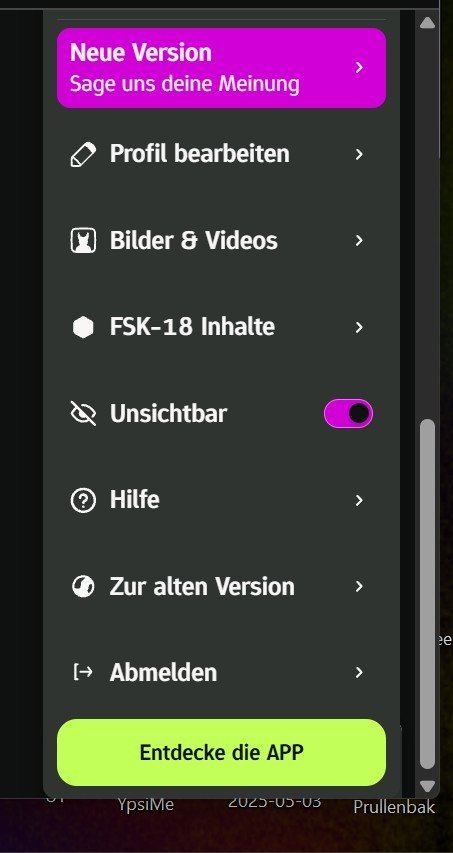 Wo ist bei der neuen Fetisch.de Profilmaske nun der Abmelde oder Logout Funktionsbutton ....über Einstellungen leider nirgends zu finden !?? Danke vorab für eine Info ...LG RT