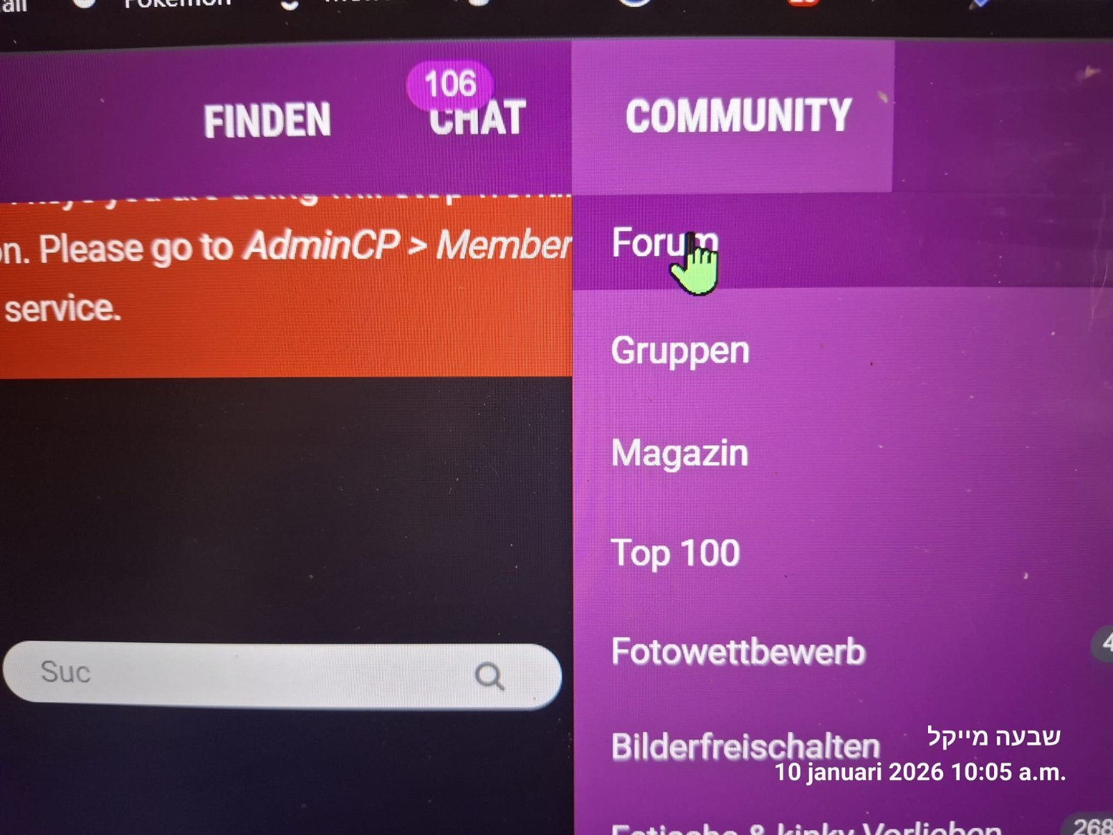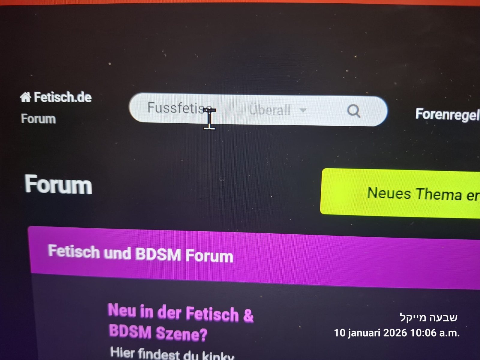 Fr**** Geschrieben Januar 10 Vor 34 Minuten , schrieb FETMOD-UYEN: Ich weiss nicht, ob du die Webseite nutzt (www.fetisch.de) oder die App. Startseite aufrufen. Dann oben mit der Maus auch Community "fahren". Dann Forum auswählen und anklicken. Dann sieht du über der Unterforenliste ein Eingabefeld, wo du nach Themen per Stichworte suchen kannst. Wäre es möglich, das du uns davon einen Screenshot postest? Ich kann es weder in der App noch auf der Webseite finden 😅