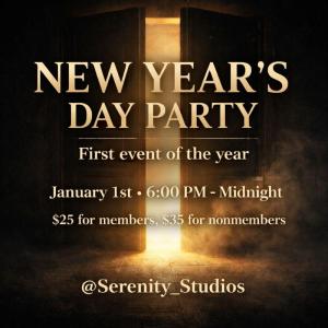 Serenity Studios opens its doors on January 1st, 6pm to midnight for the very first party of 2026.
